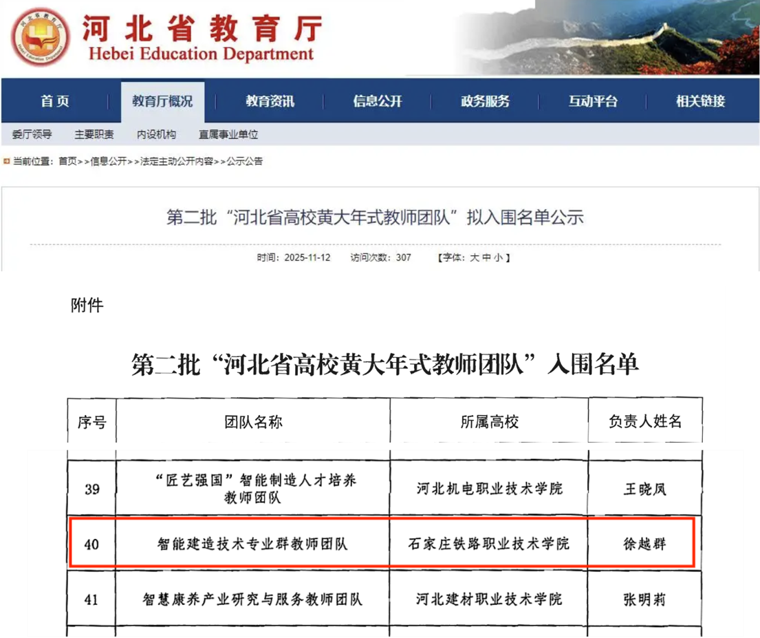 石铁院建筑系智能建造技术专业群教师团队入选第二批“河北省高校黄大年式教师团队”